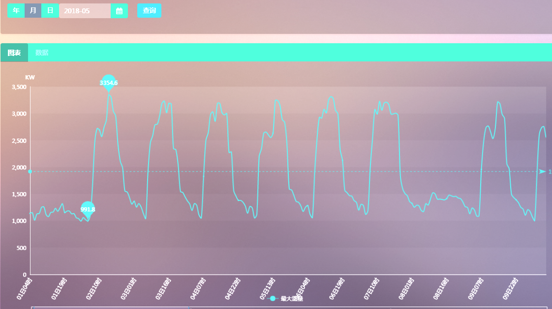 根據對該企業監測負荷曲線一段時間后,發現該企業每月固定的一兩次尖峰值是由大功率設備開啟造成,因此,對該企業大功率設備的開啟時間進行調整,尖峰負荷下降400KW,對最大需量值進行調整,每月節省基本電費12800元。